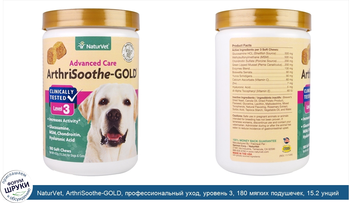 Друзья, если у вас есть отзыв/дополнение/комментарий/вопрос относительно NaturVet, ArthriSoothe-GOLD, профессиональный уход, уровень 3, 180 мягких подушечек, 15.2 унций (432 г) - напишите его ответом в эту тему (это будет полезно всему сообществу в целом и вам в отдельности).