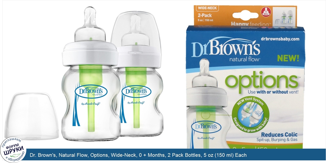 Dr. Brown\'s, Natural Flow, Options, Wide-Neck, 0 + Months, 2 Pack Bottles, 5 oz (150 ml) Each