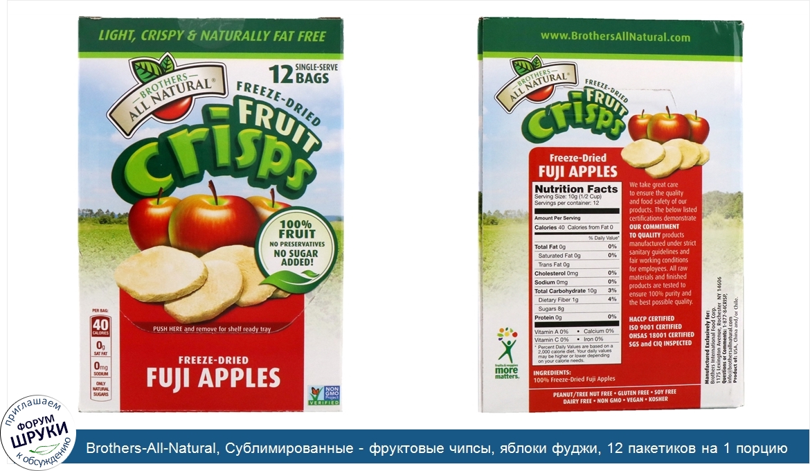 Друзья, если у вас есть отзыв/дополнение/комментарий/вопрос относительно Brothers-All-Natural, Сублимированные - фруктовые чипсы, яблоки фуджи, 12 пакетиков на 1 порцию, 120 г - напишите его ответом в эту тему (это будет полезно всему сообществу в целом и вам в отдельности).