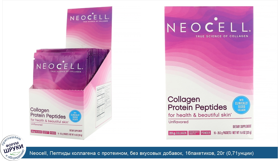 Друзья, если у вас есть отзыв/дополнение/комментарий/вопрос относительно Neocell, Пептиды коллагена с протеином, без вкусовых добавок, 16пакетиков, 20г (0,71унции) каждый - напишите его ответом в эту тему (это будет полезно всему сообществу в целом и вам в отдельности).