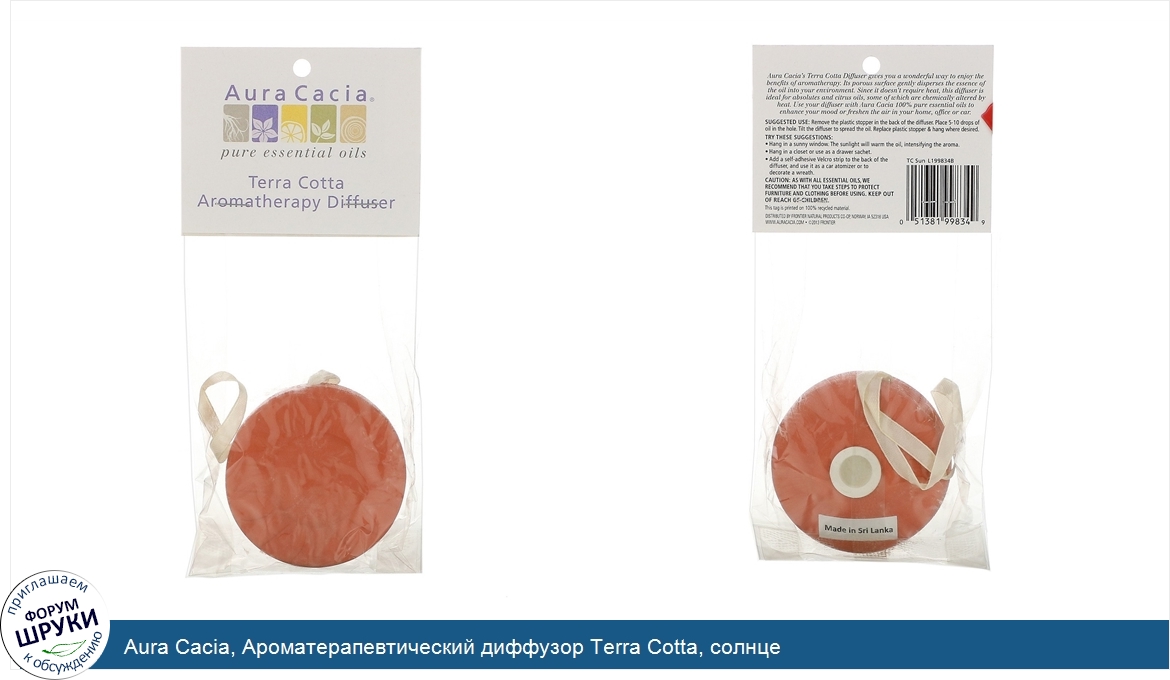 Друзья, если у вас есть отзыв/дополнение/комментарий/вопрос относительно Aura Cacia, Ароматерапевтический диффузор Terra Cotta, солнце - напишите его ответом в эту тему (это будет полезно всему сообществу в целом и вам в отдельности).