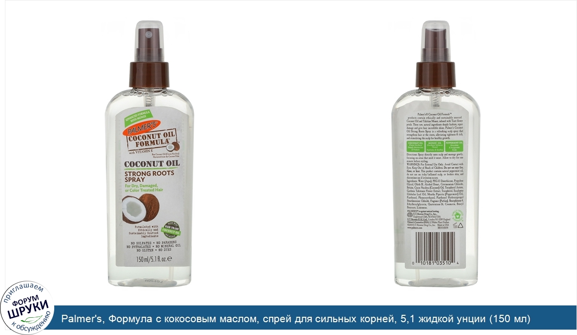 Друзья, если у вас есть отзыв/дополнение/комментарий/вопрос относительно Palmer's, Формула с кокосовым маслом, спрей для сильных корней, 5,1 жидкой унции (150 мл) - напишите его ответом в эту тему (это будет полезно всему сообществу в целом и вам в отдельности).