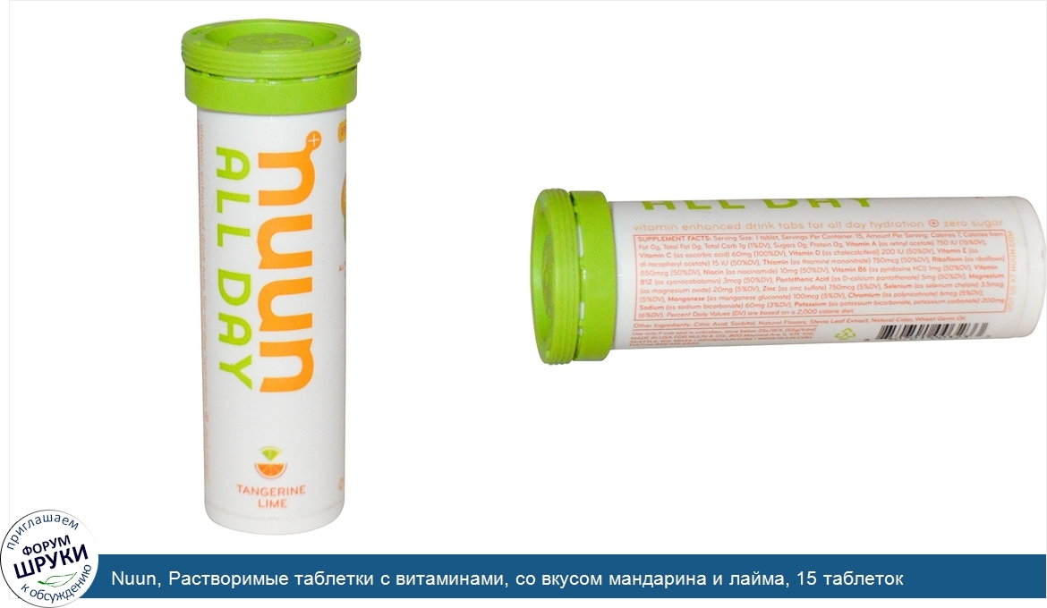 Nuun, Растворимые таблетки с витаминами, со вкусом мандарина и лайма, 15 таблеток
