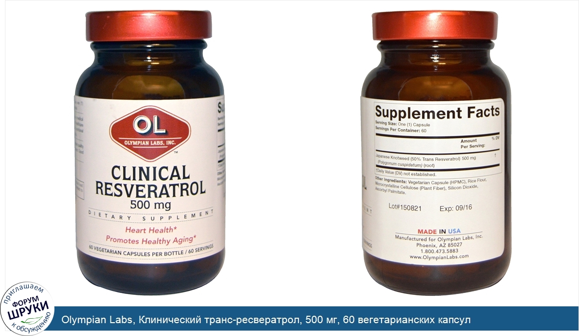Категории: Olympian Labs Inc., Пищевые добавки, Антиоксиданты, Резвератрол, Олимпиан Лэбс, 21009