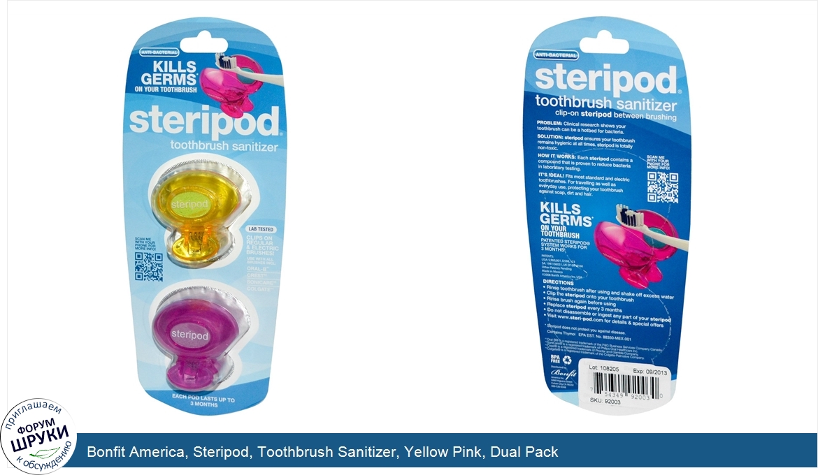 Друзья, если у вас есть отзыв/дополнение/комментарий/вопрос относительно Bonfit America, Steripod, Toothbrush Sanitizer, Yellow Pink, Dual Pack - напишите его ответом в эту тему (это будет полезно всему сообществу в целом и вам в отдельности).