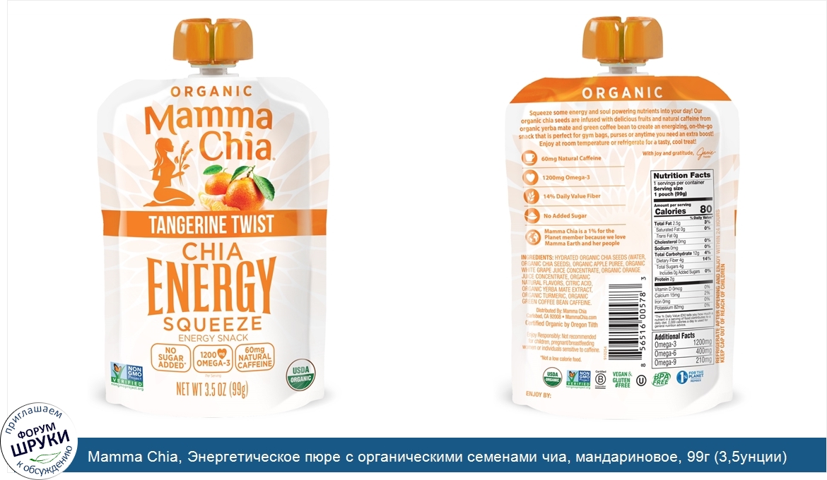 Друзья, если у вас есть отзыв/дополнение/комментарий/вопрос относительно Mamma Chia, Энергетическое пюре с органическими семенами чиа, мандариновое, 99г (3,5унции) - напишите его ответом в эту тему (это будет полезно всему сообществу в целом и вам в отдельности).