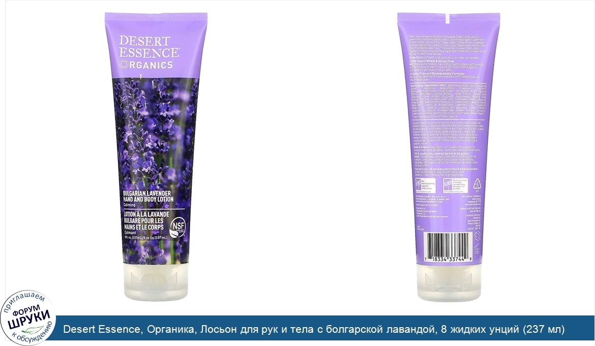 ru Desert Essence, Органика, Лосьон для рук и тела с болгарской лавандой, 8 жидких унций (237 мл)