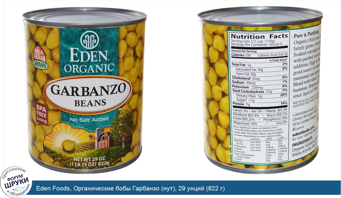 Друзья, если у вас есть отзыв/дополнение/комментарий/вопрос относительно Eden Foods, Органические бобы Гарбанзо (нут), 29 унций (822 г) - напишите его ответом в эту тему (это будет полезно всему сообществу в целом и вам в отдельности).