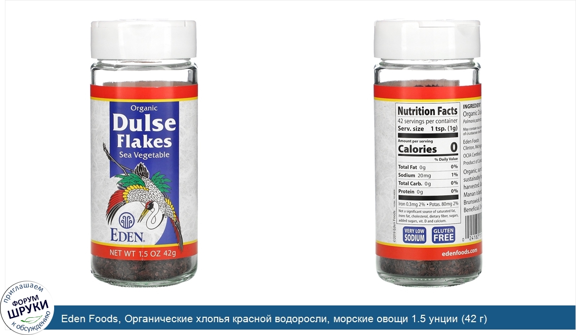 ru Eden Foods, Органические хлопья красной водоросли, морские овощи 1.5 унции (42 г)