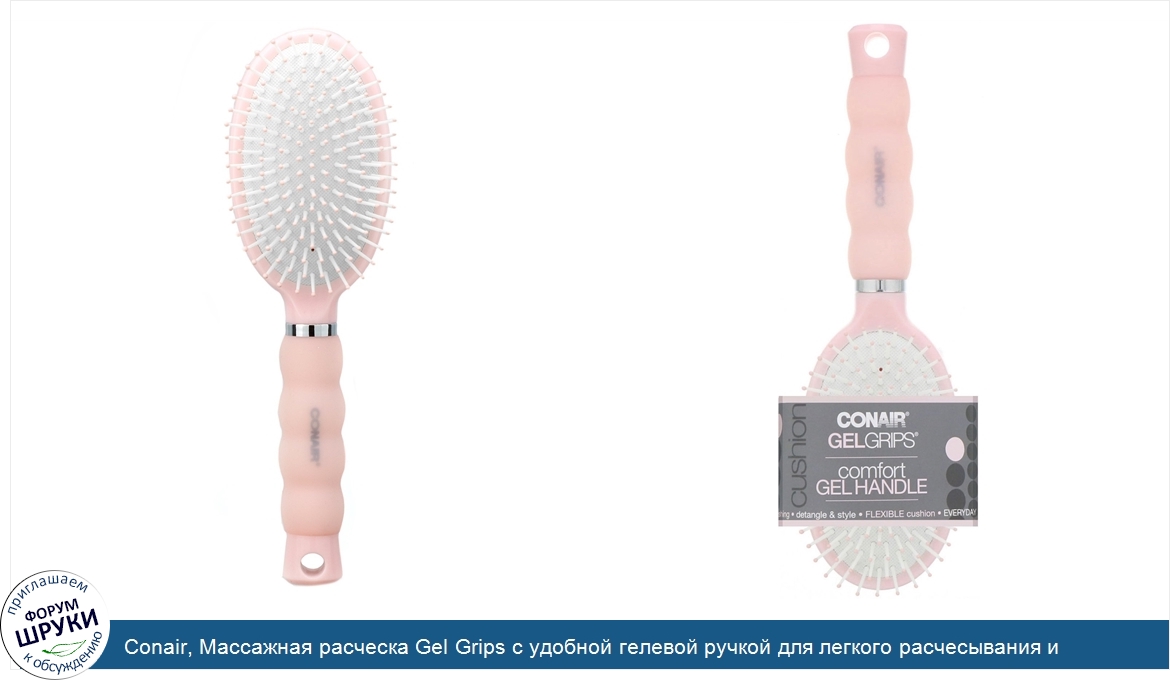 ru Conair, Массажная расческа Gel Grips с удобной гелевой ручкой для легкого расчесывания и укладки, 1шт.