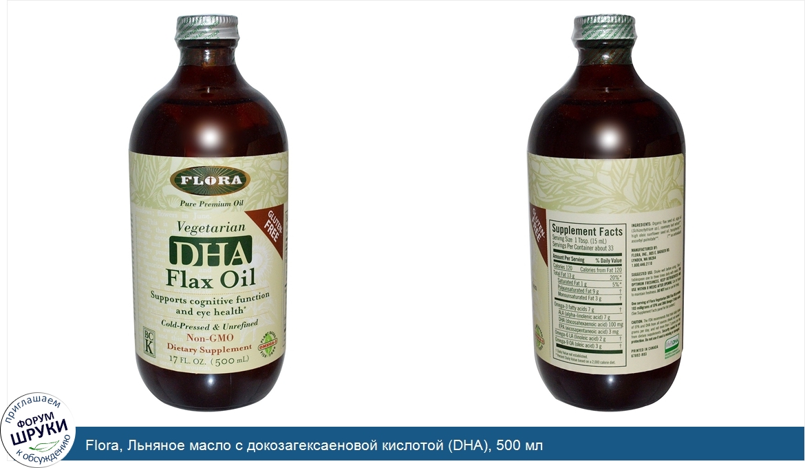 Flora, Льняное масло с докозагексаеновой кислотой (DHA), 500 мл