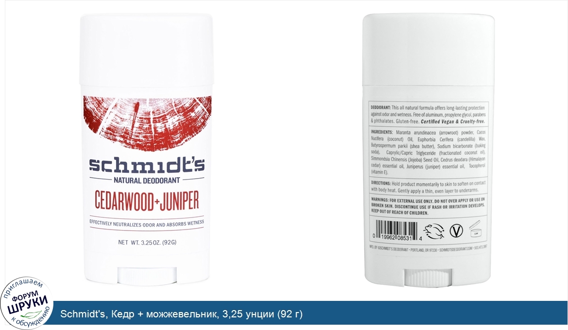 Друзья, если у вас есть отзыв/дополнение/комментарий/вопрос относительно Schmidt's, Кедр + можжевельник, 3,25 унции (92 г) - напишите его ответом в эту тему (это будет полезно всему сообществу в целом и вам в отдельности).