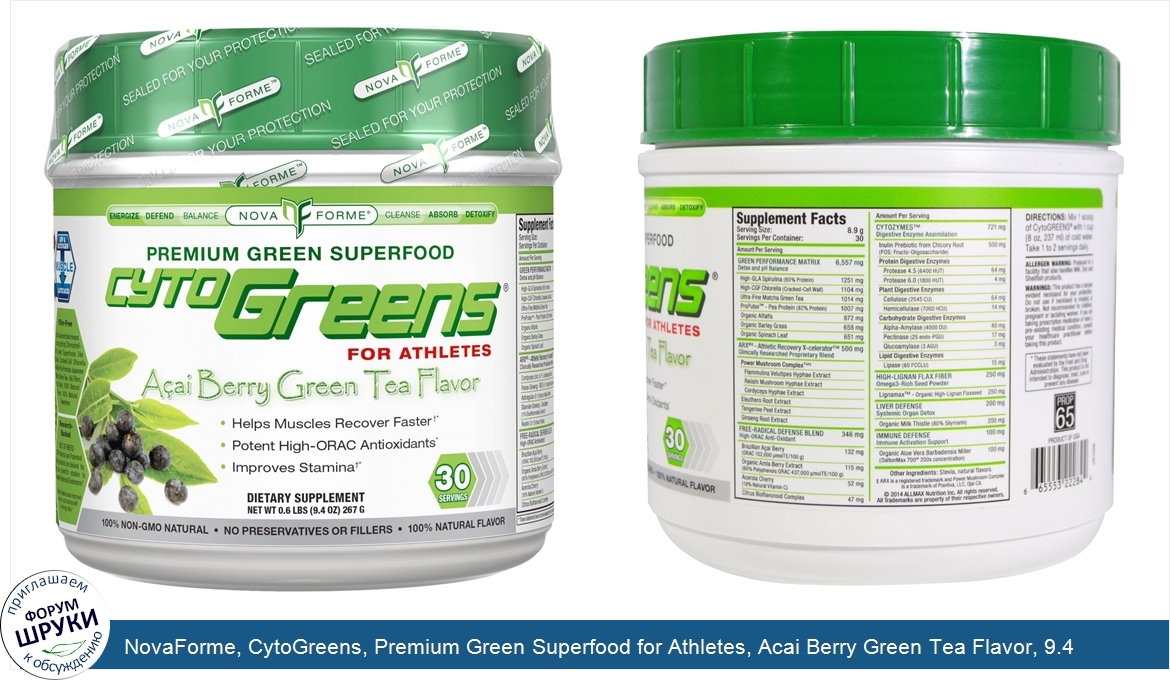 Друзья, если у вас есть отзыв/дополнение/комментарий/вопрос относительно NovaForme, CytoGreens, Premium Green Superfood for Athletes, Acai Berry Green Tea Flavor, 9.4 oz (267 g) - напишите его ответом в эту тему (это будет полезно всему сообществу в целом и вам в отдельности).