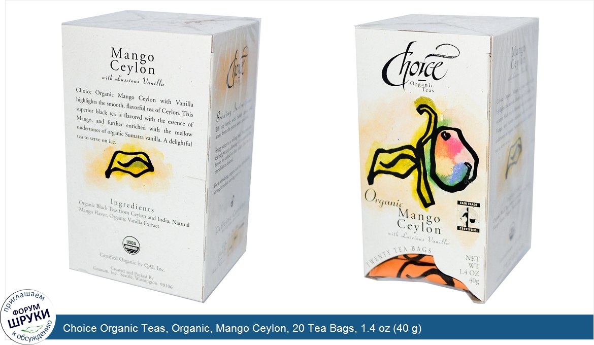 Друзья, если у вас есть отзыв/дополнение/комментарий/вопрос относительно Choice Organic Teas, Organic, Mango Ceylon, 20 Tea Bags, 1.4 oz (40 g) - напишите его ответом в эту тему (это будет полезно всему сообществу в целом и вам в отдельности).