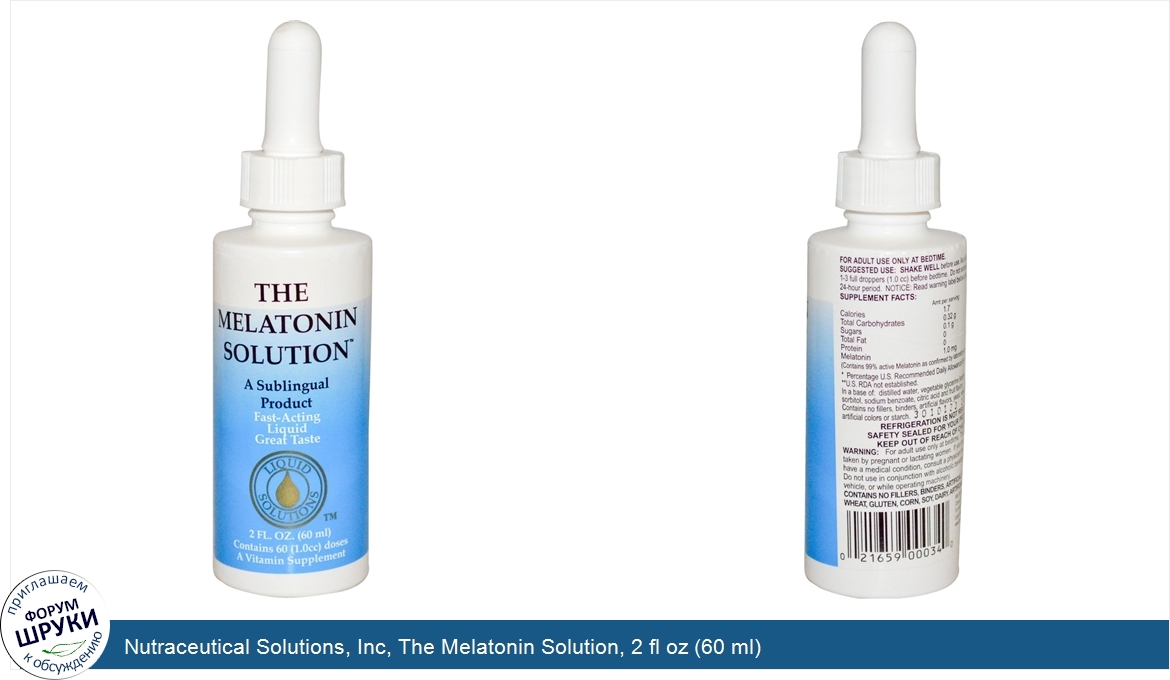 Друзья, если у вас есть отзыв/дополнение/комментарий/вопрос относительно Nutraceutical Solutions, Inc, The Melatonin Solution, 2 fl oz (60 ml) - напишите его ответом в эту тему (это будет полезно всему сообществу в целом и вам в отдельности).