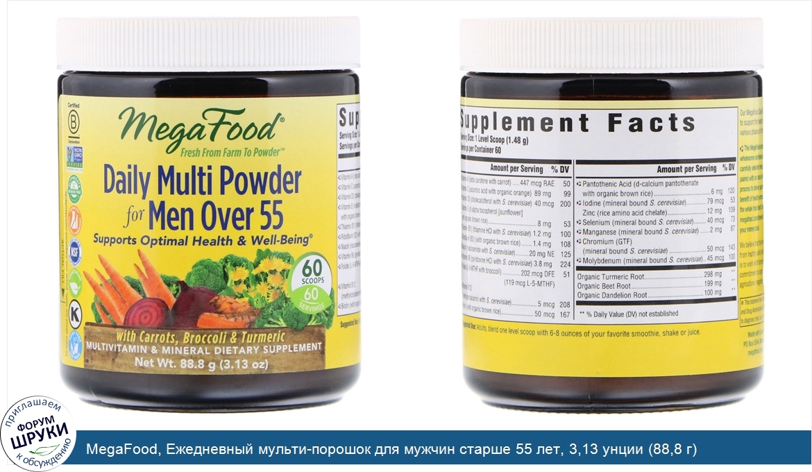 Друзья, если у вас есть отзыв/дополнение/комментарий/вопрос относительно MegaFood, Ежедневный мульти-порошок для мужчин старше 55 лет, 3,13 унции (88,8 г) - напишите его ответом в эту тему (это будет полезно всему сообществу в целом и вам в отдельности).