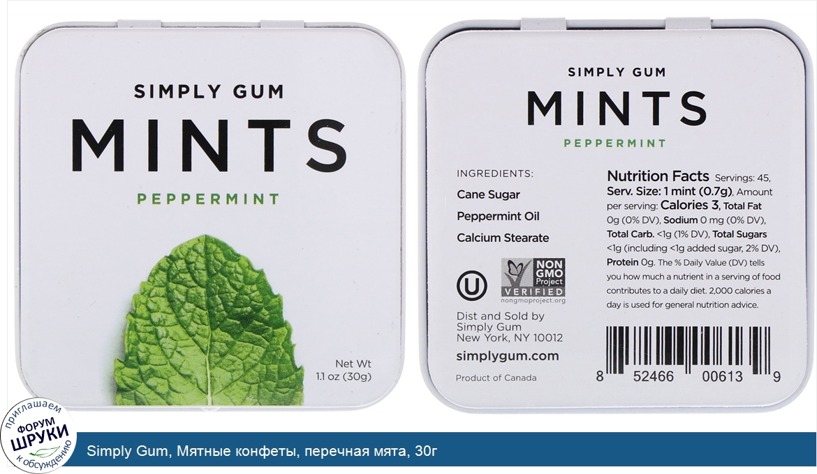 Категории: Simply Gum, Продукты питания, Шоколад и сладости, Мятные леденцы, 90026