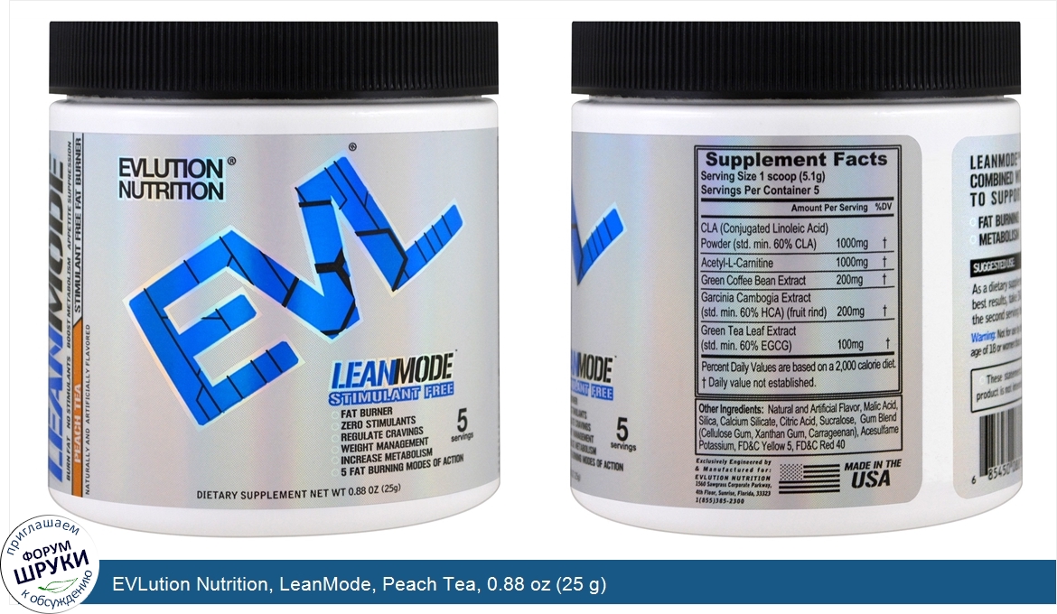 Друзья, если у вас есть отзыв/дополнение/комментарий/вопрос относительно EVLution Nutrition, LeanMode, Peach Tea, 0.88 oz (25 g) - напишите его ответом в эту тему (это будет полезно всему сообществу в целом и вам в отдельности).