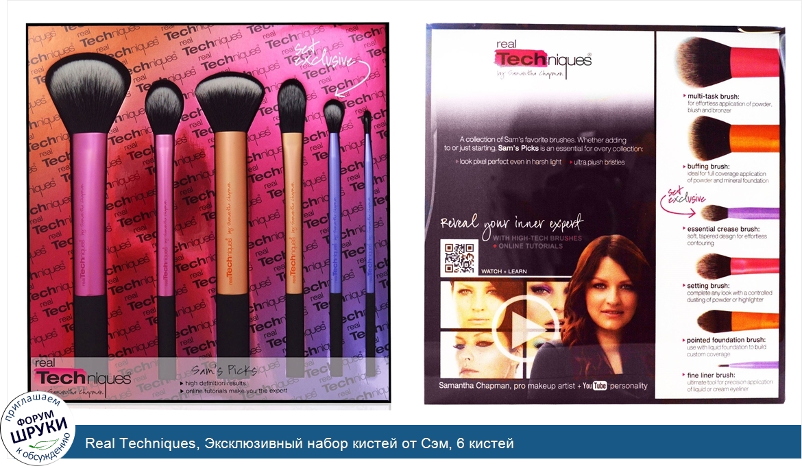 Друзья, если у вас есть отзыв/дополнение/комментарий/вопрос относительно Real Techniques, Эксклюзивный набор кистей от Сэм, 6 кистей - напишите его ответом в эту тему (это будет полезно всему сообществу в целом и вам в отдельности).