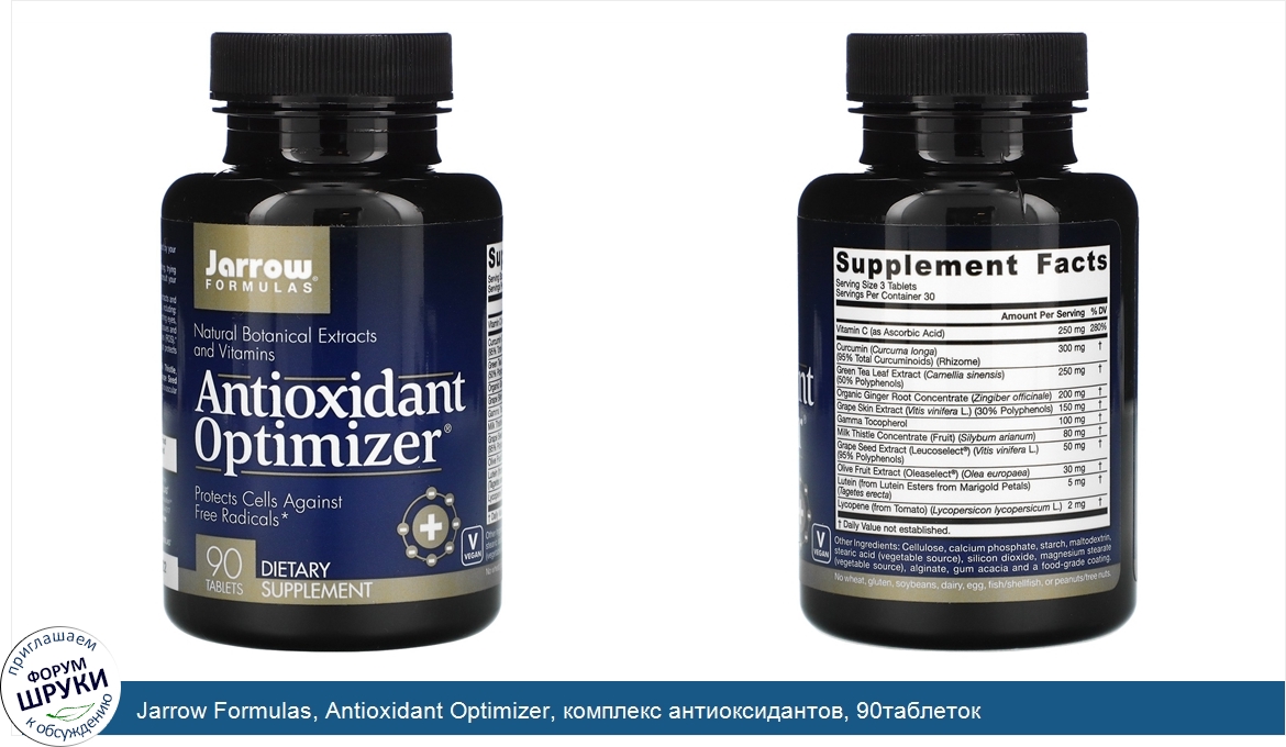 Jarrow Formulas, Antioxidant Optimizer, комплекс антиоксидантов, 90таблеток