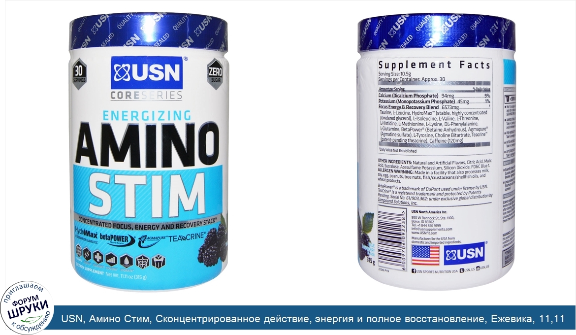 ru USN, Амино Стим, Сконцентрированное действие, энергия и полное восстановление, Ежевика, 11,11 унции (315 г)