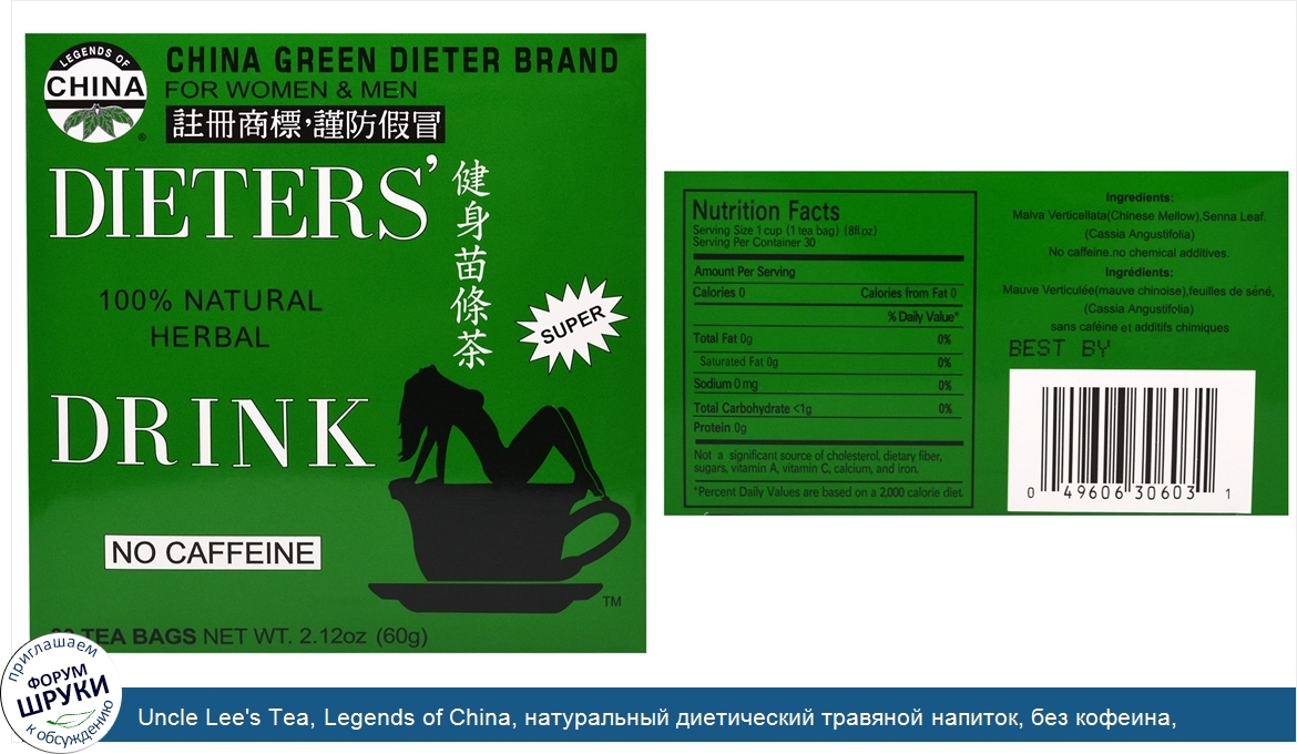 Друзья, если у вас есть отзыв/дополнение/комментарий/вопрос относительно Uncle Lee's Tea, Legends of China, натуральный диетический травяной напиток, без кофеина, 30чайных пакетиков, 69г - напишите его ответом в эту тему (это будет полезно всему сообществу в целом и вам в отдельности).