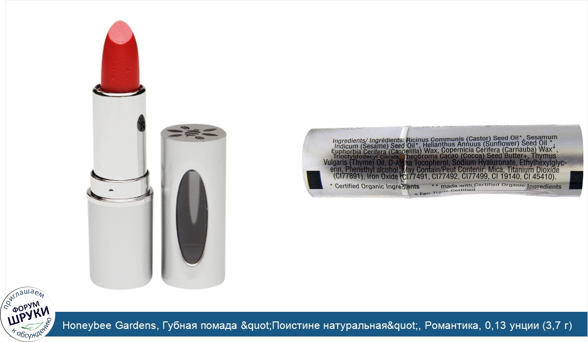 Друзья, если у вас есть отзыв/дополнение/комментарий/вопрос относительно Honeybee Gardens, Губная помада "Поистине натуральная", Романтика, 0,13 унции (3,7 г) - напишите его ответом в эту тему (это будет полезно всему сообществу в целом и вам в отдельности).