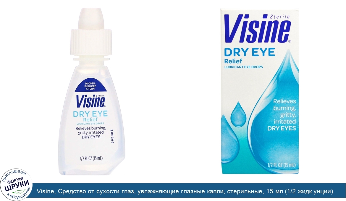 Друзья, если у вас есть отзыв/дополнение/комментарий/вопрос относительно Visine, Средство от сухости глаз, увлажняющие глазные капли, стерильные, 15 мл (1/2 жидк.унции) - напишите его ответом в эту тему (это будет полезно всему сообществу в целом и вам в отдельности).