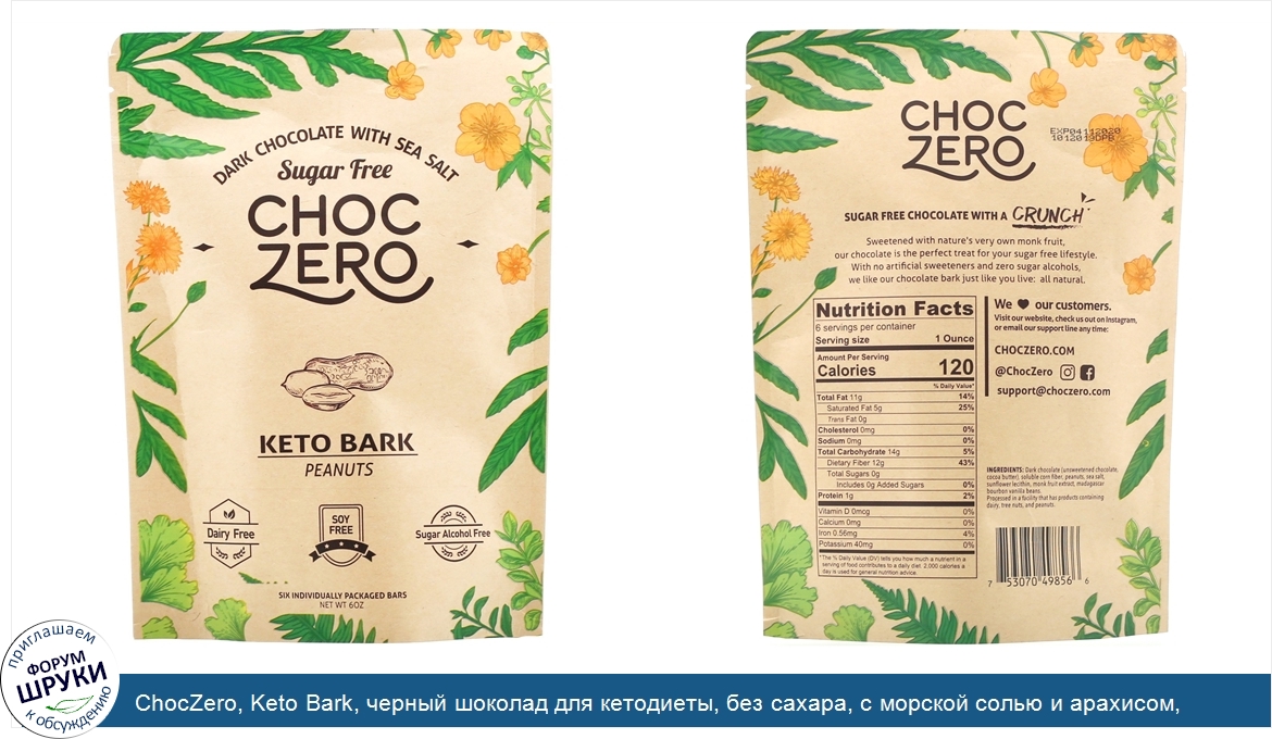 Друзья, если у вас есть отзыв/дополнение/комментарий/вопрос относительно ChocZero, Keto Bark, черный шоколад для кетодиеты, без сахара, с морской солью и арахисом, 6батончиков по 1унции - напишите его ответом в эту тему (это будет полезно всему сообществу в целом и вам в отдельности).