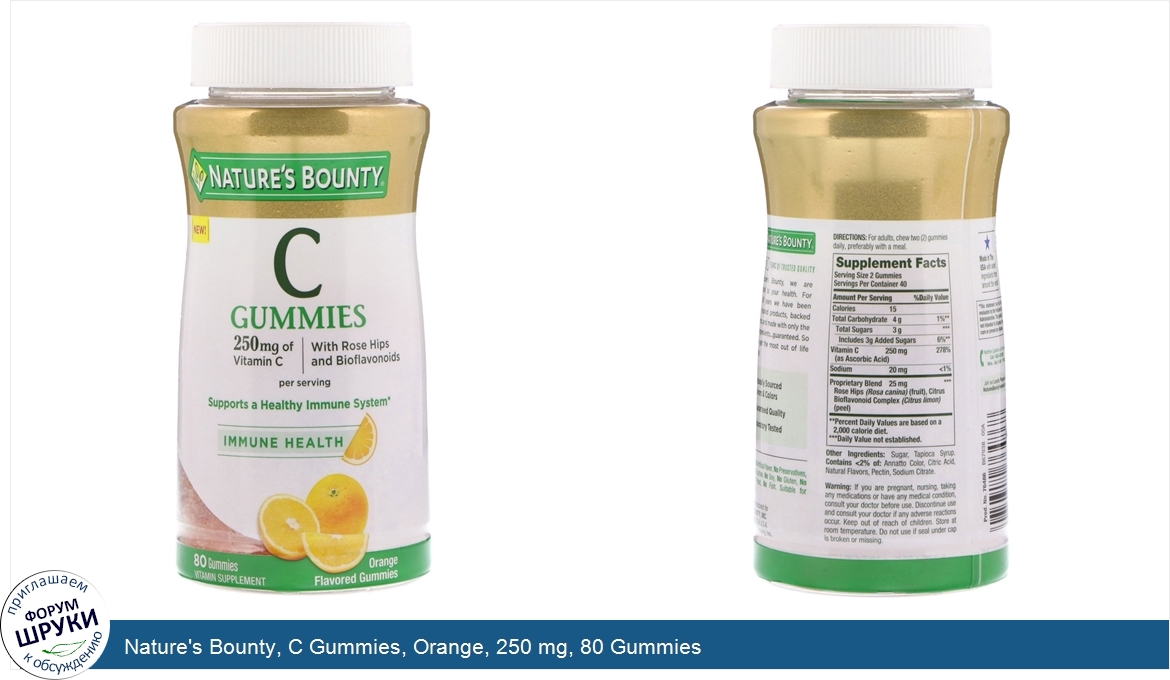 Друзья, если у вас есть отзыв/дополнение/комментарий/вопрос относительно Nature's Bounty, C Gummies, Orange, 250 mg, 80 Gummies - напишите его ответом в эту тему (это будет полезно всему сообществу в целом и вам в отдельности).