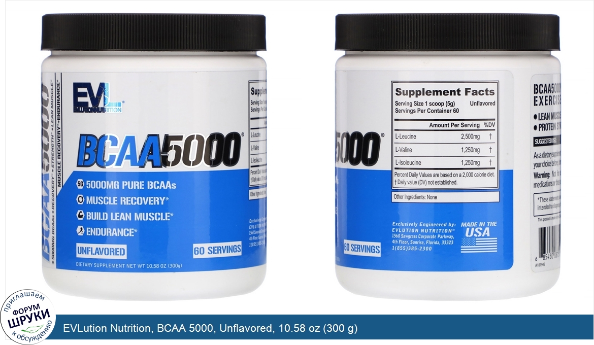 Друзья, если у вас есть отзыв/дополнение/комментарий/вопрос относительно EVLution Nutrition, BCAA 5000, Unflavored, 10.58 oz (300 g) - напишите его ответом в эту тему (это будет полезно всему сообществу в целом и вам в отдельности).