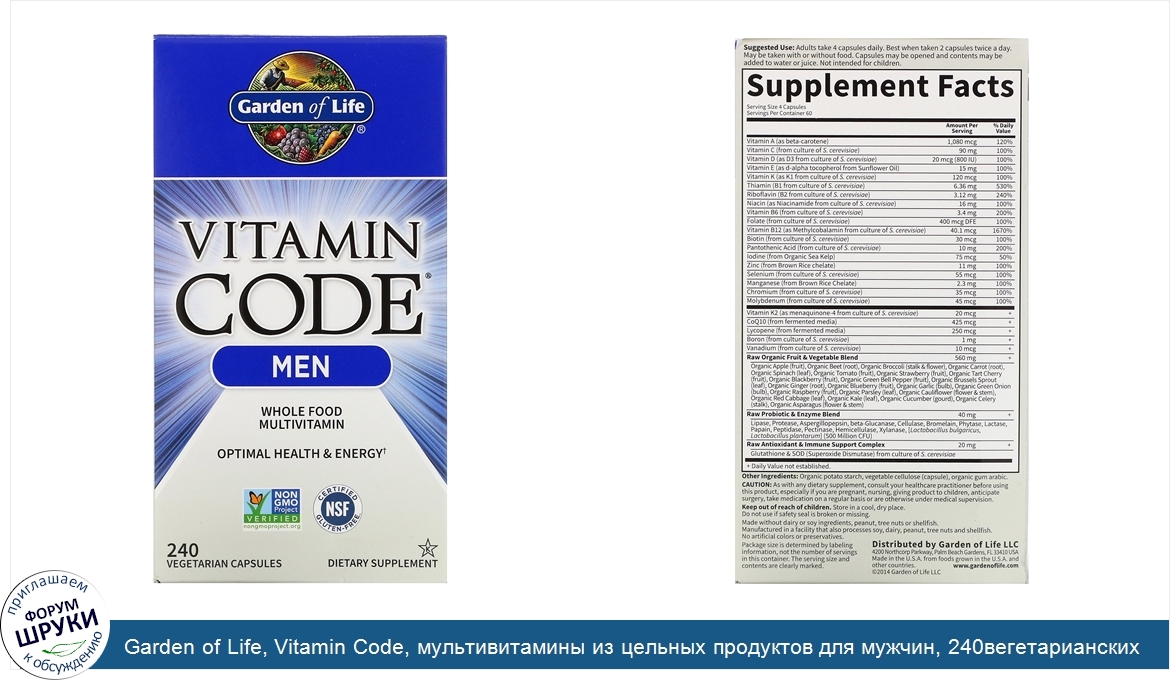Друзья, если у вас есть отзыв/дополнение/комментарий/вопрос относительно Garden of Life, Vitamin Code, мультивитамины из цельных продуктов для мужчин, 240вегетарианских капсул - напишите его ответом в эту тему (это будет полезно всему сообществу в целом и вам в отдельности).