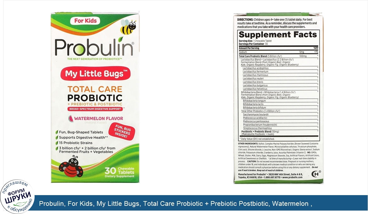 Друзья, если у вас есть отзыв/дополнение/комментарий/вопрос относительно Probulin, For Kids, My Little Bugs, Total Care Probiotic + Prebiotic Postbiotic, Watermelon , 30 Chewable Tablets - напишите его ответом в эту тему (это будет полезно всему сообществу в целом и вам в отдельности).