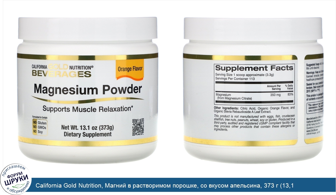 California Gold Nutrition, Магний в растворимом порошке, со вкусом апельсина, 373 г (13,1 унций)