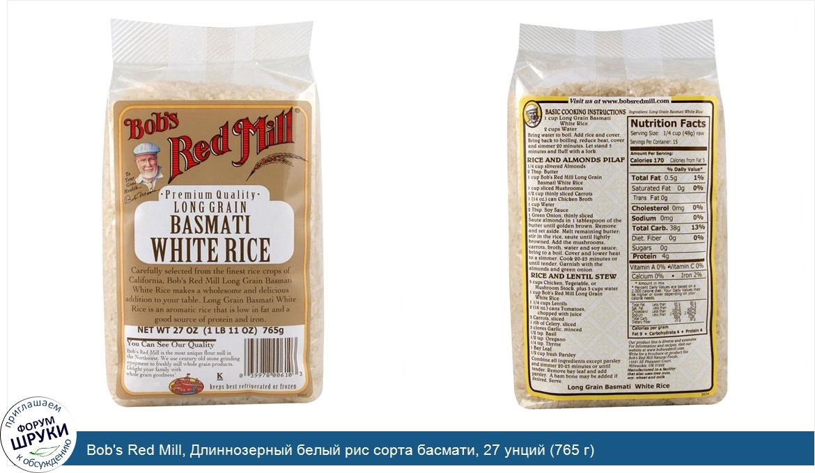 Bob's Red Mill, Длиннозерный белый рис сорта басмати, 27 унций (765 г)