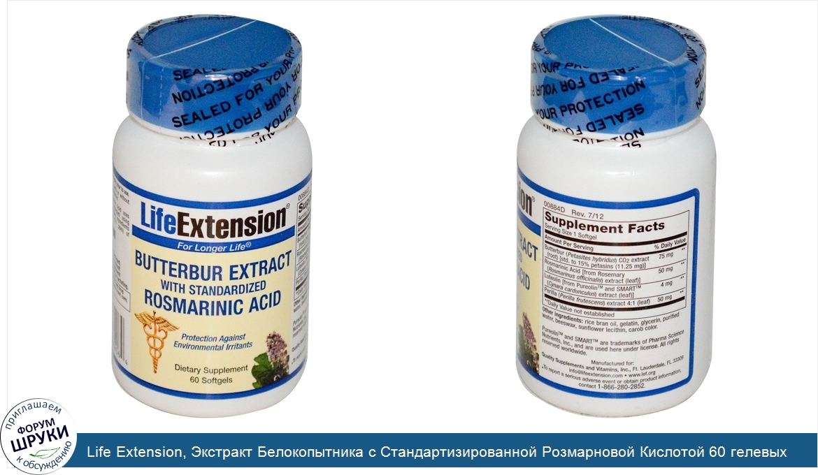 Друзья, если у вас есть отзыв/дополнение/комментарий/вопрос относительно Life Extension, Экстракт Белокопытника с Стандартизированной Розмарновой Кислотой 60 гелевых капсул - напишите его ответом в эту тему (это будет полезно всему сообществу в целом и вам в отдельности).