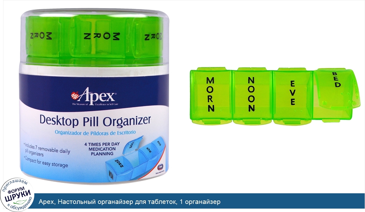 Друзья, если у вас есть отзыв/дополнение/комментарий/вопрос относительно Apex, Настольный органайзер для таблеток, 1 органайзер - напишите его ответом в эту тему (это будет полезно всему сообществу в целом и вам в отдельности).