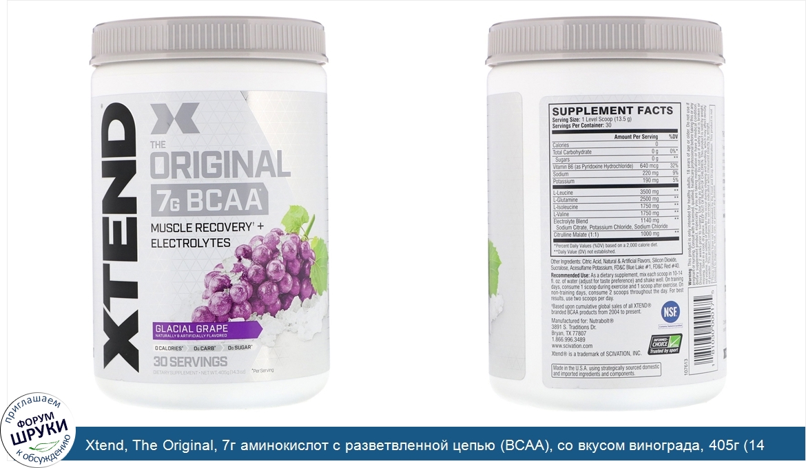 Xtend, The Original, 7г аминокислот с разветвленной цепью (BCAA), со вкусом винограда, 405г (14,3унции)