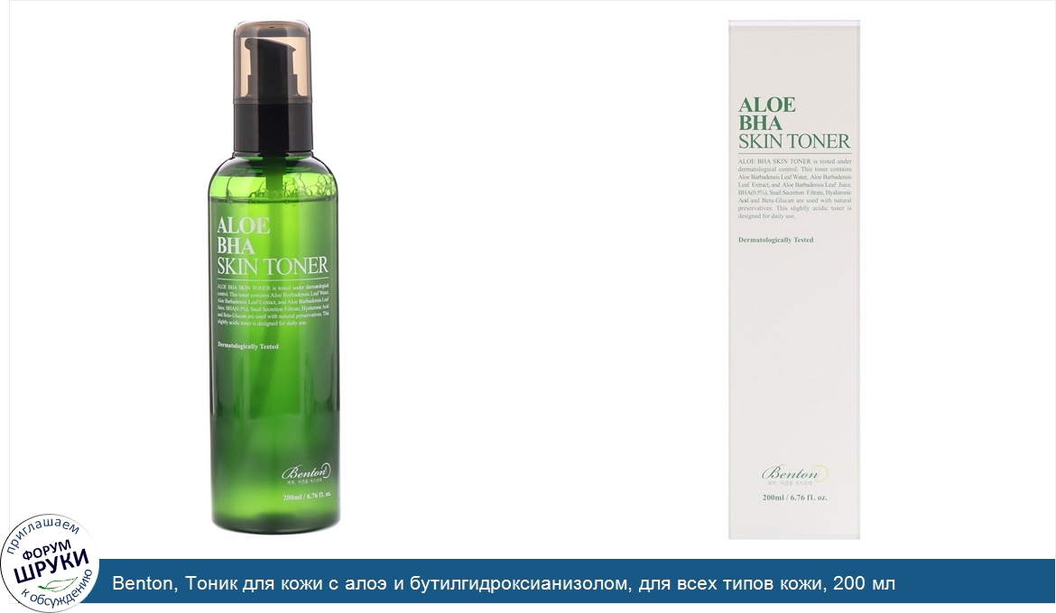 Друзья, если у вас есть отзыв/дополнение/комментарий/вопрос относительно Benton, Тоник для кожи с алоэ и бутилгидроксианизолом, для всех типов кожи, 200 мл - напишите его ответом в эту тему (это будет полезно всему сообществу в целом и вам в отдельности).