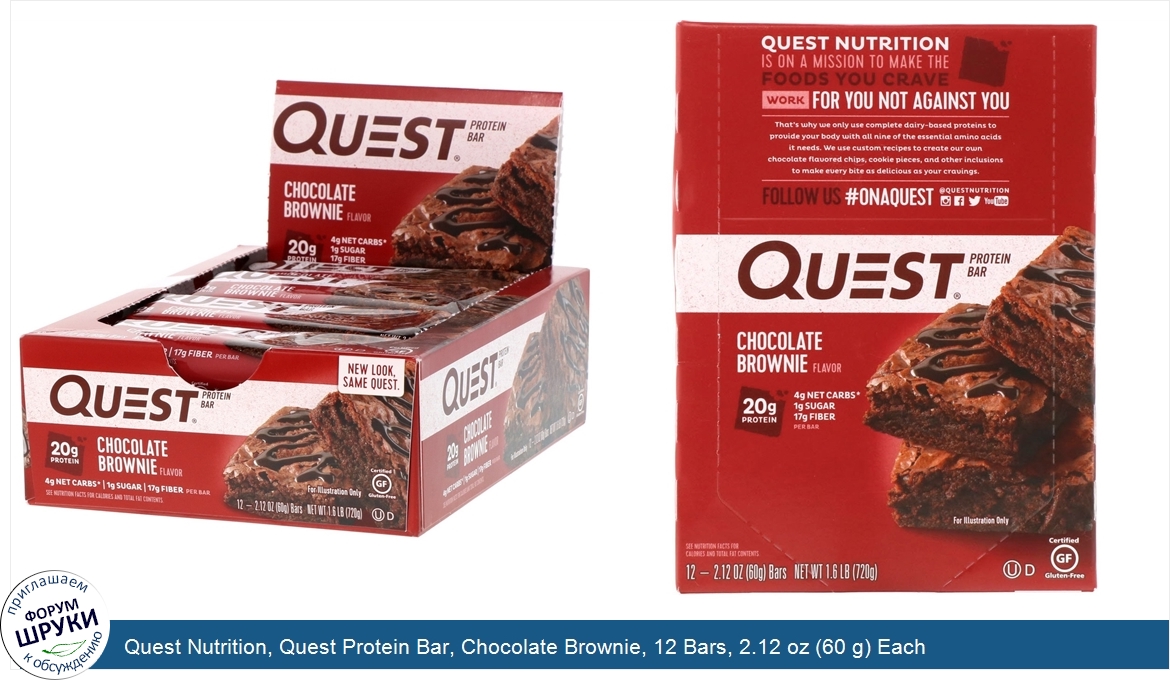 Друзья, если у вас есть отзыв/дополнение/комментарий/вопрос относительно Quest Nutrition, Quest Protein Bar, Chocolate Brownie, 12 Bars, 2.12 oz (60 g) Each - напишите его ответом в эту тему (это будет полезно всему сообществу в целом и вам в отдельности).