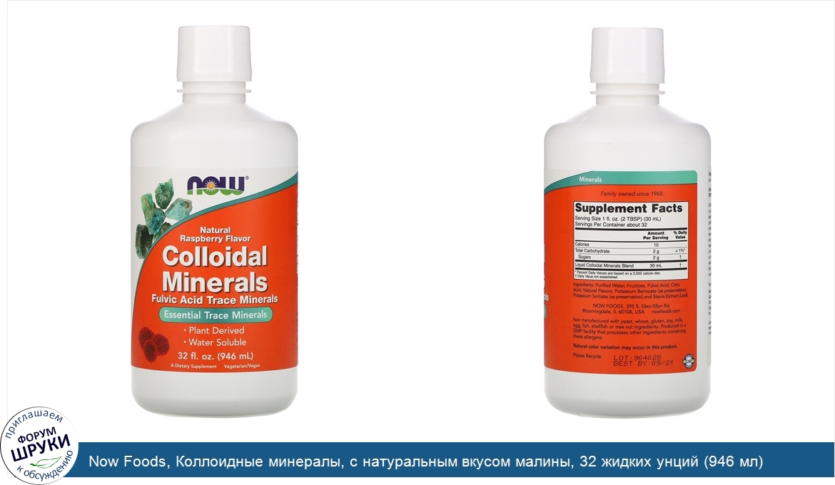 ru Now Foods, Коллоидные минералы, с натуральным вкусом малины, 32 жидких унций (946 мл)