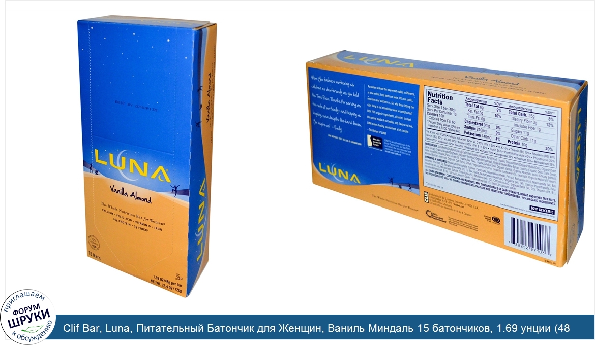 Друзья, если у вас есть отзыв/дополнение/комментарий/вопрос относительно Clif Bar, Luna, Питательный Батончик для Женщин, Ваниль Миндаль 15 батончиков, 1.69 унции (48 г) каждый - напишите его ответом в эту тему (это будет полезно всему сообществу в целом и вам в отдельности).