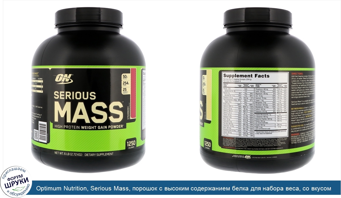 Друзья, если у вас есть отзыв/дополнение/комментарий/вопрос относительно Optimum Nutrition, Serious Mass, порошок с высоким содержанием белка для набора веса, со вкусом клубники, 2,72 кг (6 фунтов) - напишите его ответом в эту тему (это будет полезно всему сообществу в целом и вам в отдельности).