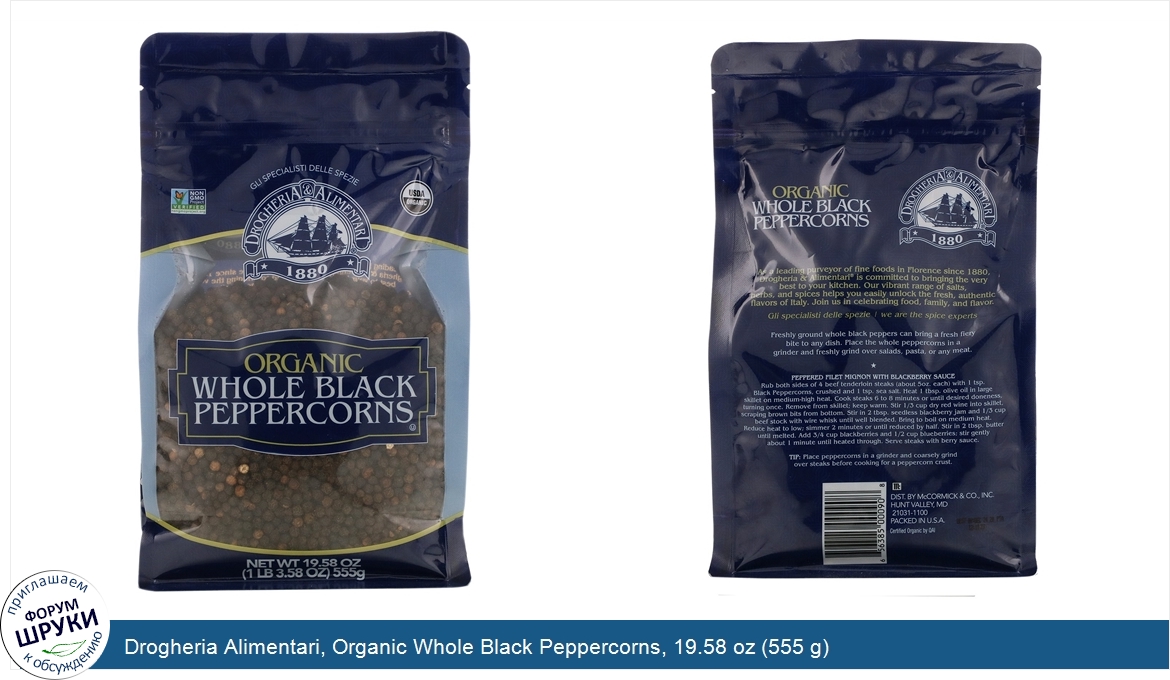 [DESCRIPT]Non GMO Project Verified. USDA Organic. We Are the Spice Experts. Certified Organic by QAI. As a leading purveyor of fine foods in Florence since 1880, Drogheria Alimentari is committed to bring the very best to your kitchen. Our vibrant range of salts, herbs, and spices helps you easily unlock the fresh, authentic flavors of Italy. Join us in celebrating food, family, and flavor. Freshly ground whole black peppers can bring a fresh fiery bite to any dish. Place the whole peppercorns in a grinder and fresh grind over salads, pasta, or any meat.[/DESCRIPT]... (описание дополняется)