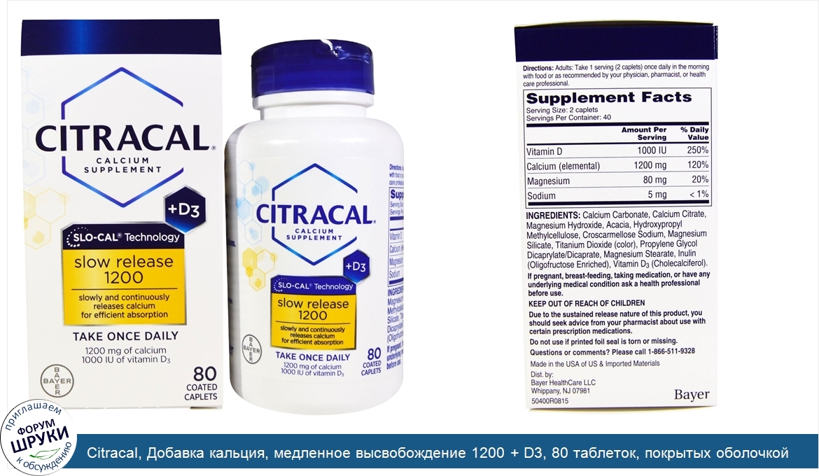 Citracal, Добавка кальция, медленное высвобождение 1200 + D3, 80 таблеток, покрытых оболочкой