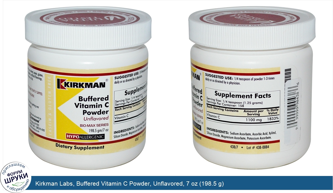 Друзья, если у вас есть отзыв/дополнение/комментарий/вопрос относительно Kirkman Labs, Buffered Vitamin C Powder, Unflavored, 7 oz (198.5 g) - напишите его ответом в эту тему (это будет полезно всему сообществу в целом и вам в отдельности).