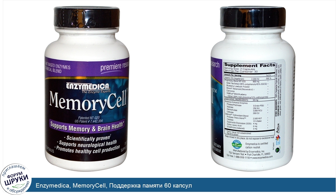 ru Enzymedica, MemoryCell, Поддержка памяти 60 капсул