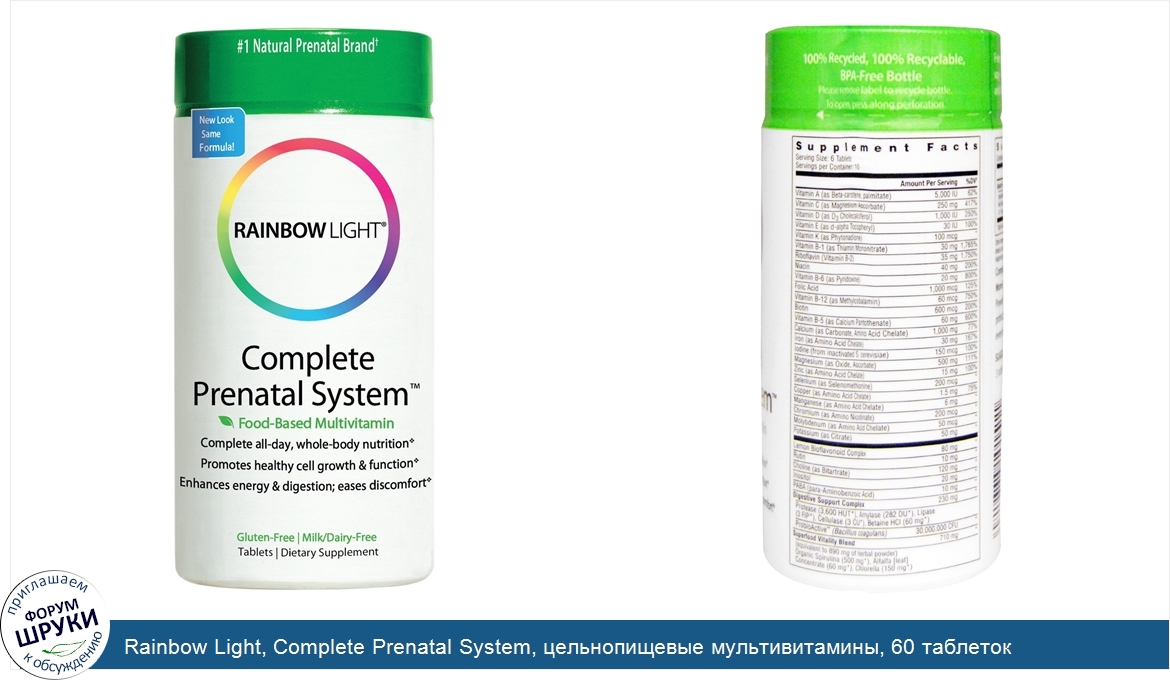 Друзья, если у вас есть отзыв/дополнение/комментарий/вопрос относительно Rainbow Light, Complete Prenatal System, цельнопищевые мультивитамины, 60 таблеток - напишите его ответом в эту тему (это будет полезно всему сообществу в целом и вам в отдельности).