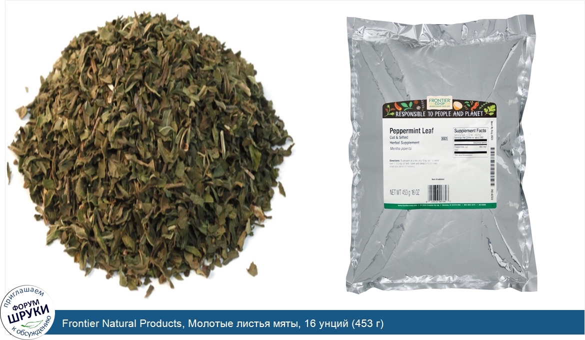 Друзья, если у вас есть отзыв/дополнение/комментарий/вопрос относительно Frontier Natural Products, Молотые листья мяты, 16 унций (453 г) - напишите его ответом в эту тему (это будет полезно всему сообществу в целом и вам в отдельности).
