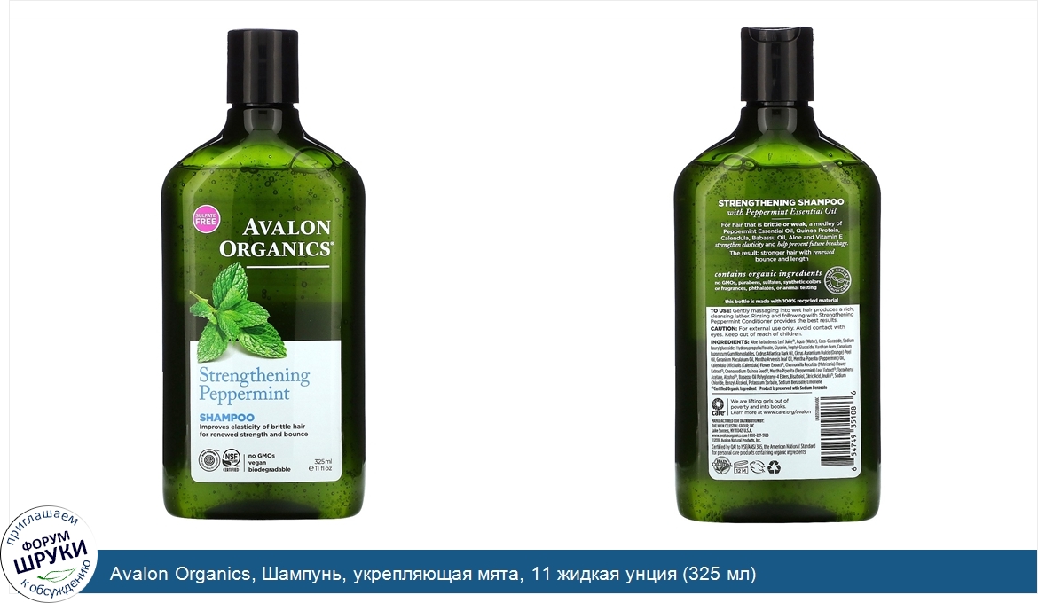 Avalon Organics, Шампунь, укрепляющая мята, 11 жидкая унция (325 мл)